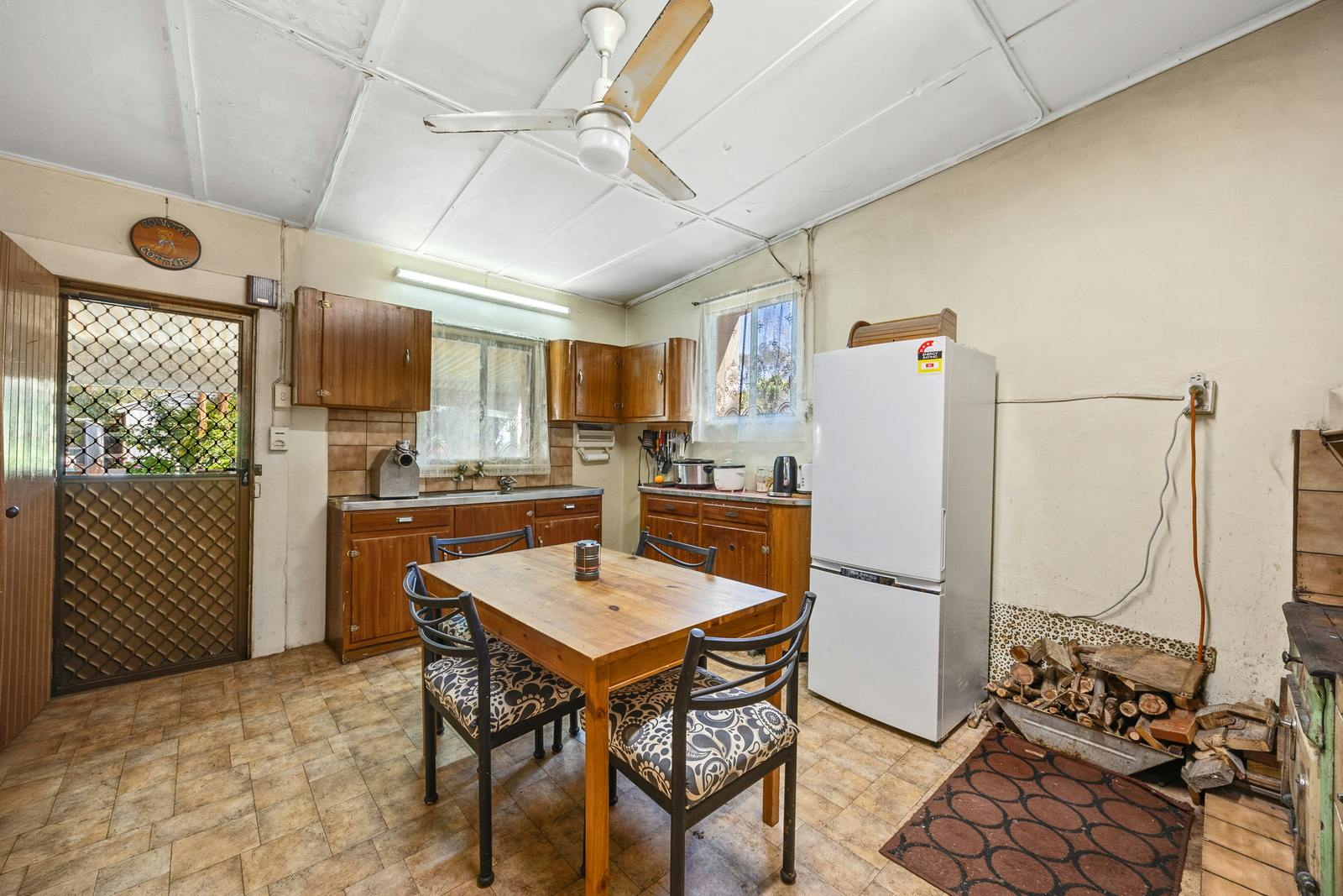 Inside, the home offers a formal lounge with heating and cooling, two spacious bedrooms with ceiling fans, and a kitchen/meals area complete with original wood stove. Three additional sleep-outs add versatility for extra bedrooms, a study, or storage. The bathroom includes shower, vanity and WC, complemented by a large outside laundry and second WC.